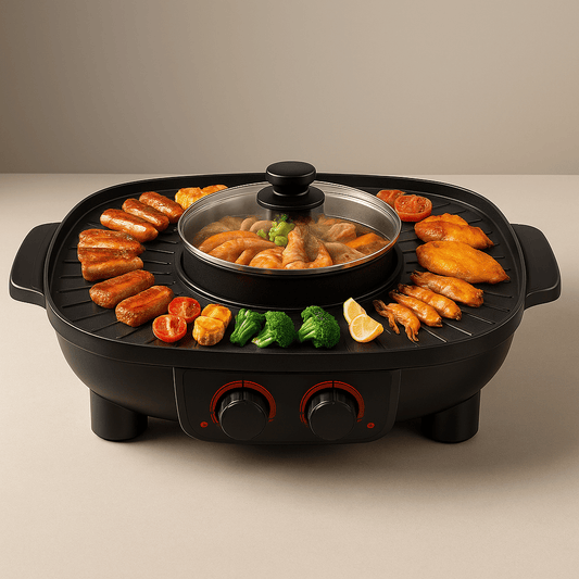 🔥 Grill DuoPro™ - Barbecue & Hot Pot sans fumée pour des repas conviviaux à la maison