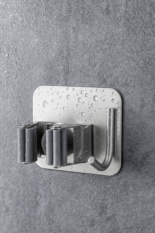 Fix&Grip™ – Crochet Mural Adhésif en Inox pour Balai et Vadrouille, Rangement Sans Perçage, Ultra-Résistant et Polyvalent